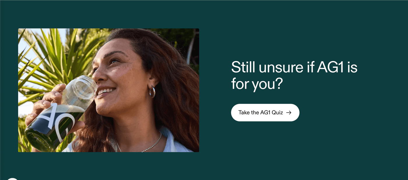 AG1 is so much more than greens. It’s your daily, drinkable scoop of vitamins, minerals, probiotics, and whole food sourced ingredients in one. Validated by research and formulated for you, AG1 helps your whole body, brain, and gut health thrive.